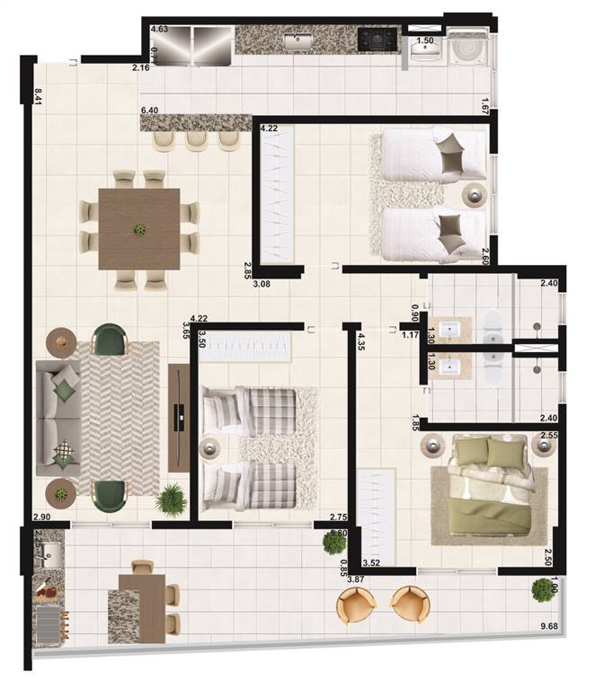 Área Útil107,68m²