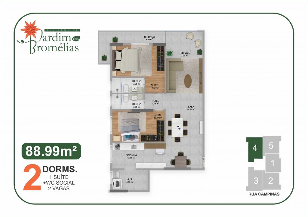 Área Útil88,99m²