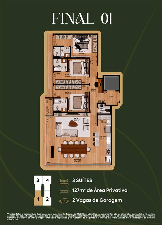 Apto 3 Dorm. sendo 3 suítes, 2 VAGAS, sacada gourmet, 126,92 m² área útil, Bairro: FORTE.