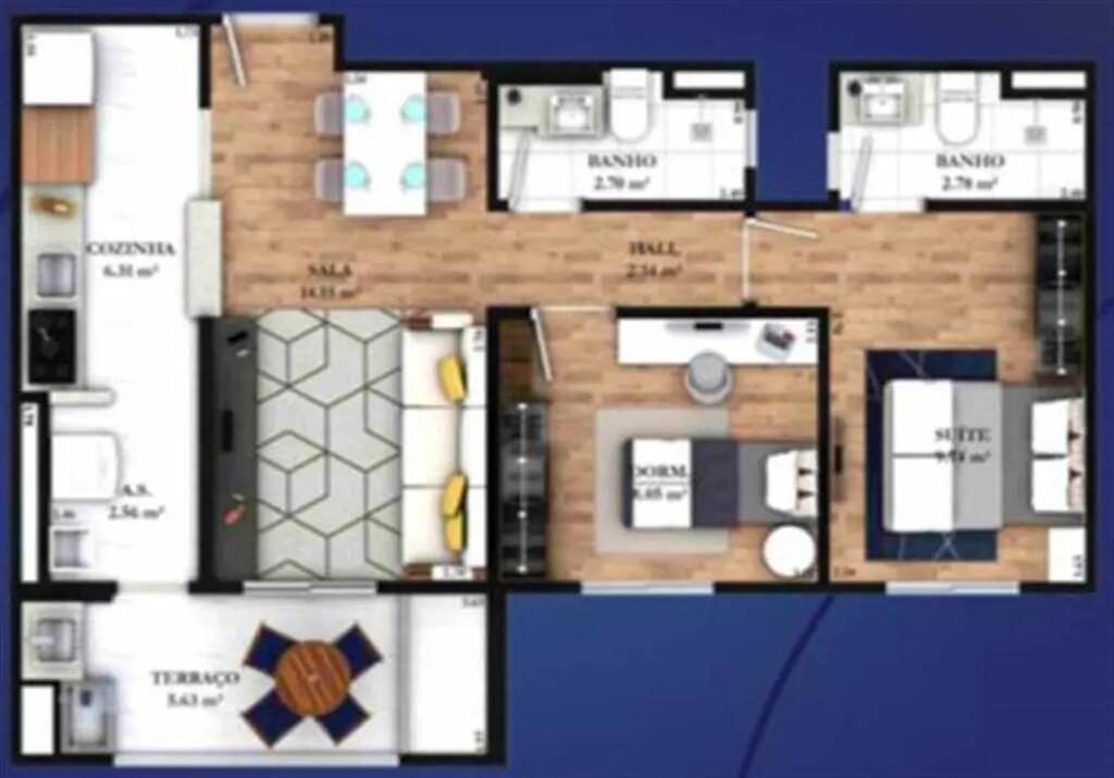 Área Útil63,42m²