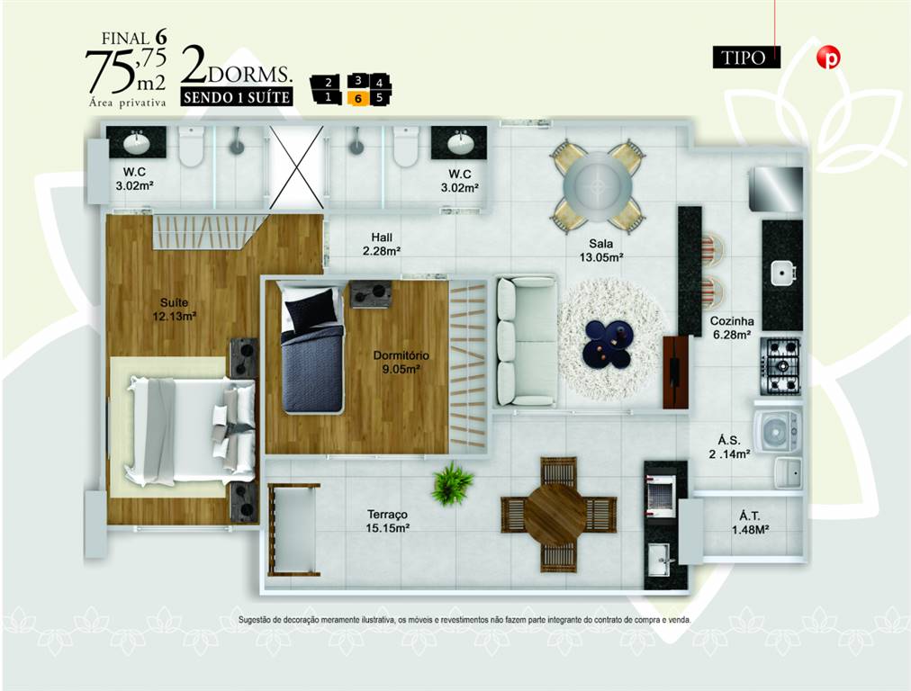 Área Útil75,00m²