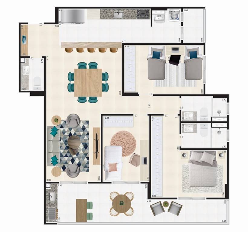 Apto de 3 Dorm c/1 suite, SACADA GOURMET, LAZER COMPLETO, 2 VAGAS. 115 M? de area util. Bairro; Ocian.