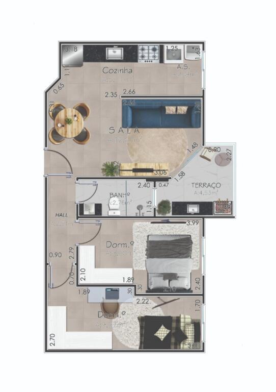 Apto de 2 Dorm c/ SACADA GOURMET, 54,62 m² de área útil. Bairro: MIRIM.