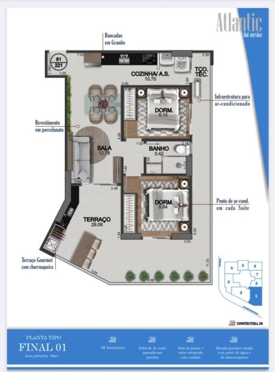 Área Útil80,30m²
